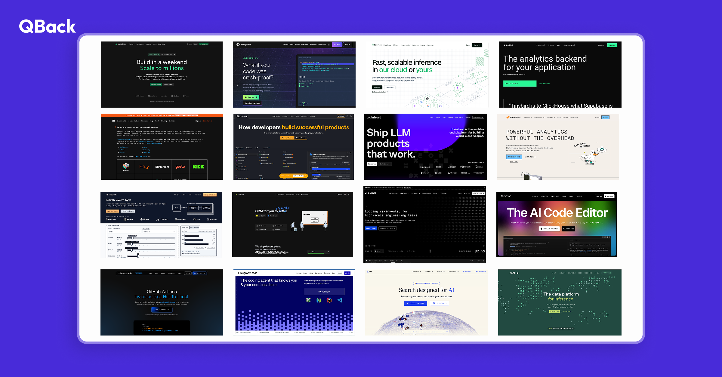 👉 Pro tip: Pick a few themes for your design: like ours, was FAST. And, show that in subtle ways. You can pick that from inspo from your core benefit/your brand name. We pulled inspo from (Video games, F1, Terminal UIs, TechCrunch, Dev Conferences like Data Council)