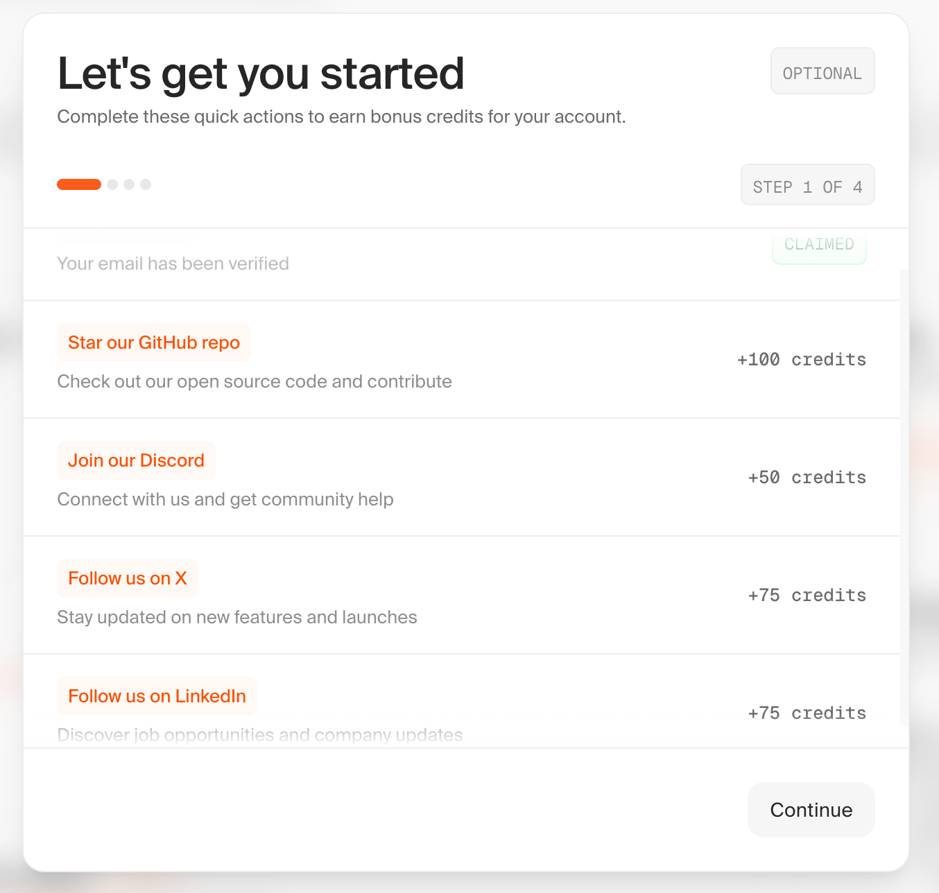 Firecrawl gamifying onboarding with credits (get credits for completing steps)